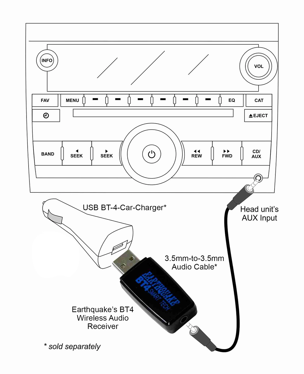 The BT-4 car charger is the perfect companion for your BT-4 Bluetooth Wireless Music Receiver.