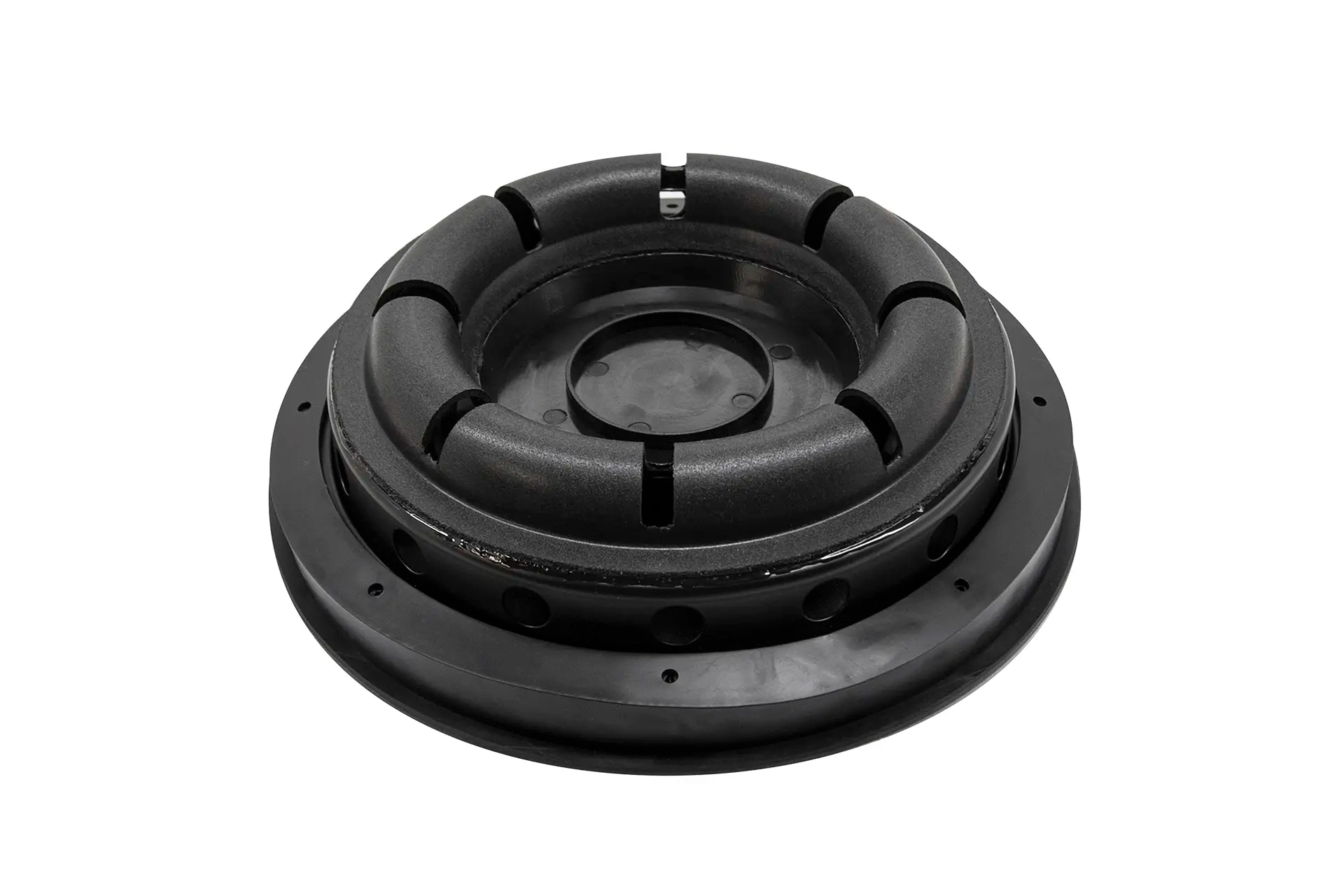 SLAPS is a patented type of passive device that significantly increases subwoofer efficiency and ability for ultra low frequency reproduction. SLAPS is short for Symmetrically Loaded Audio Passive System. As the name indicates, SLAPS is built symmetrically which distinguishes it from traditional passive devices. SLAPS integrates identical components in its suspension design, this results in identical stoke regardless of forwards or backwards motion. The high efficiency and performance is a result of the pneumatic coupling between SLAPS and an active driver.