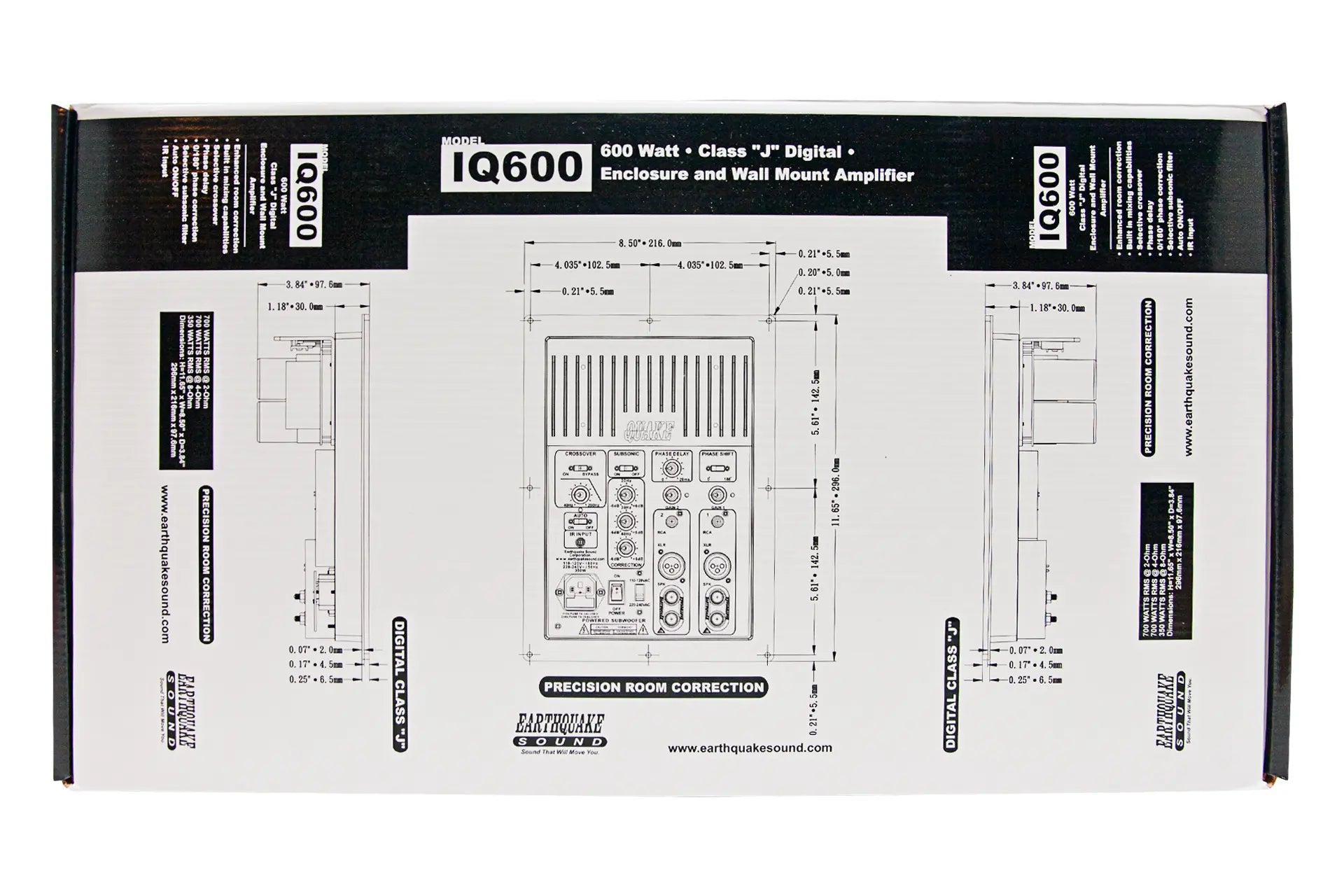 The IQ series is a new generation of plate-amps for active subwoofers. The IQ series features advanced technology resulting in higher power, greater flexibility and ease of use. IQ amplifiers are built upon Earthquakes unique class J amplifier circuit with Interface Velocity Controlled Output and Look-Ahead technology. This technology enables high power and continuous operation in demanding 2 ohm impedances.