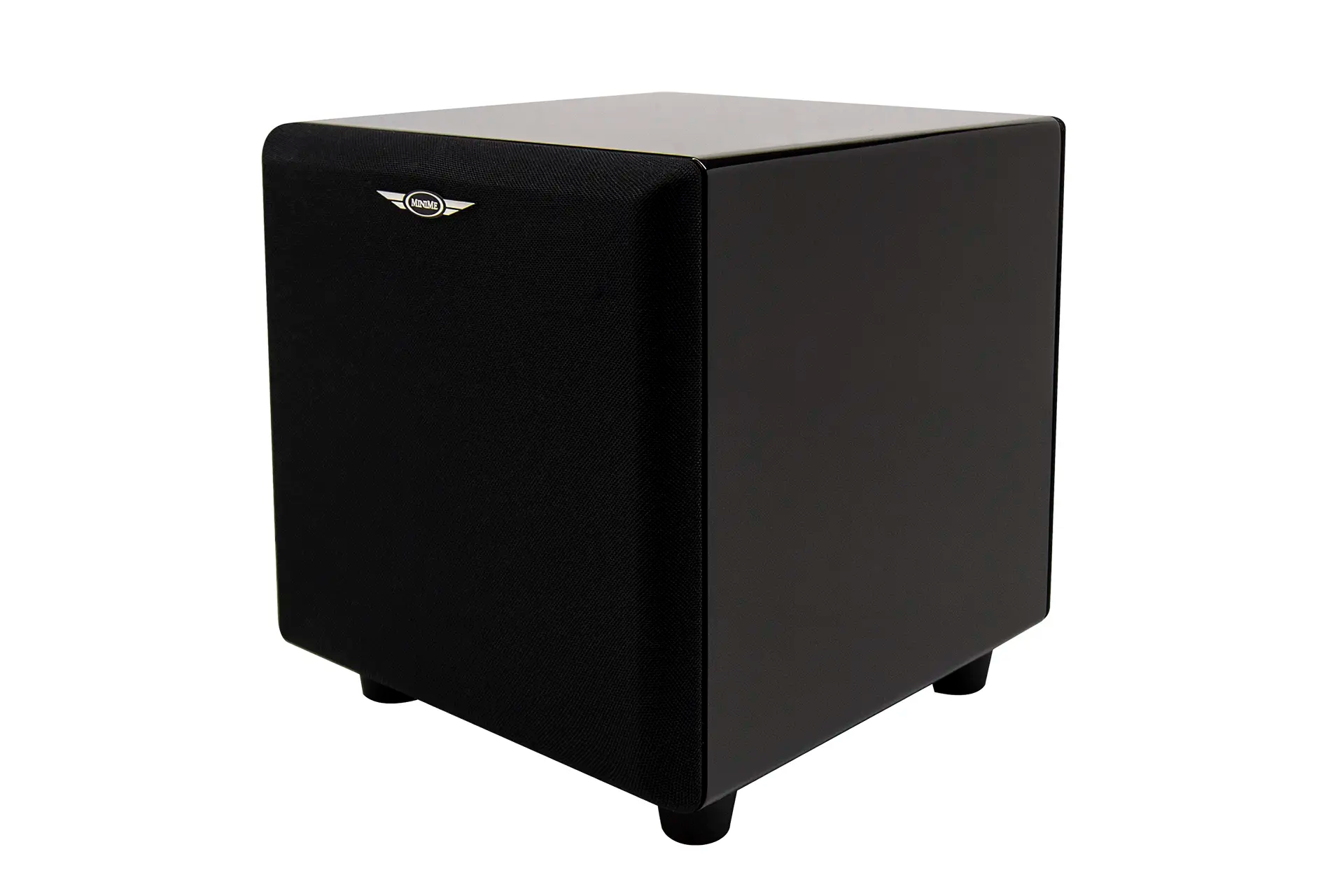 MiniMe-P8-V2 is covered in deep luxurious black piano lacquer. The cabinet finish begins with a thorough sanding and priming followed by multiple applications of black lacquer with additional fine sanding between layers. The cabinet is then finished with a smooth, high gloss clear coat. The elegant piano lacquer complements its compact modern design and in a sculptural way adds finesse and exclusivity to your home.