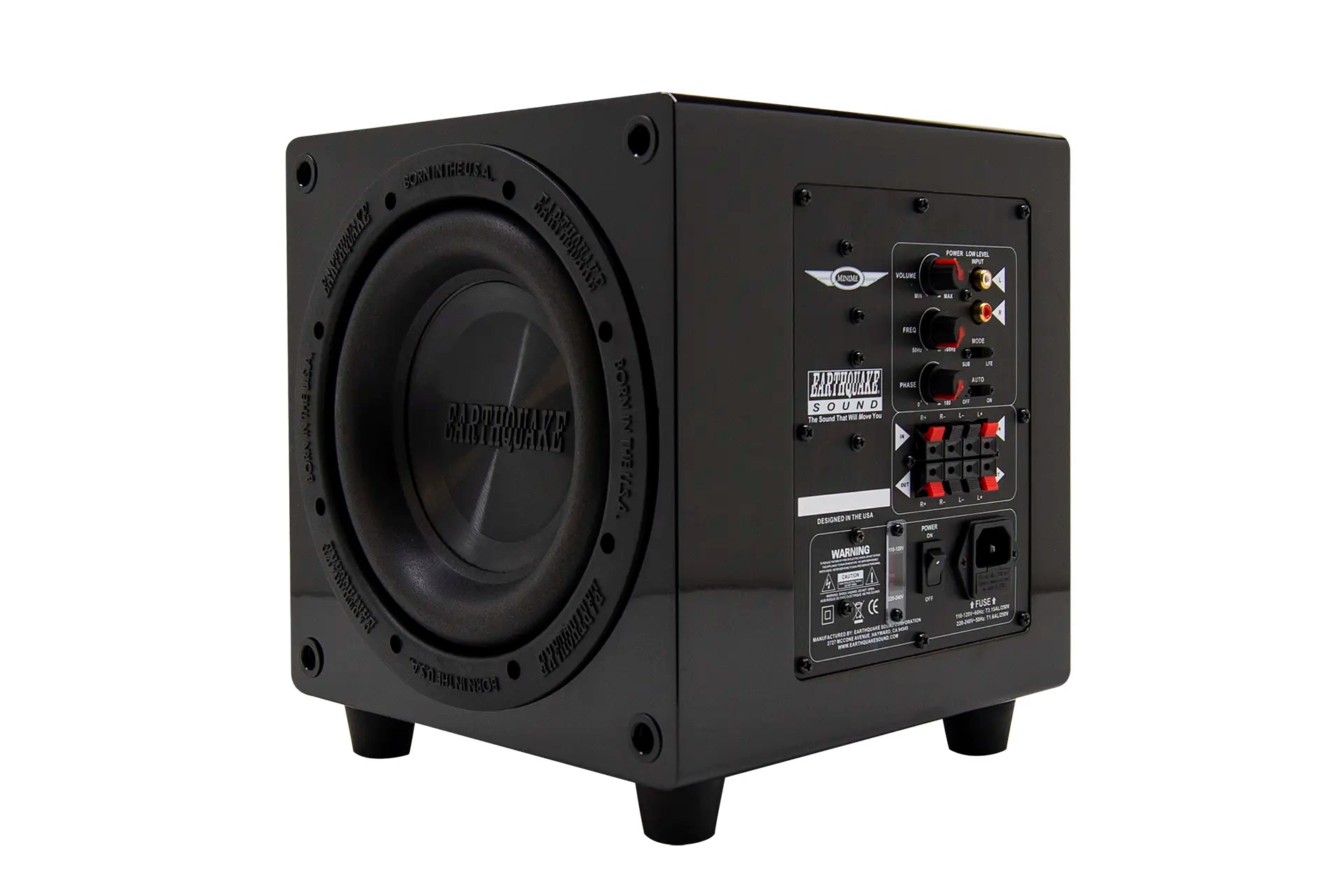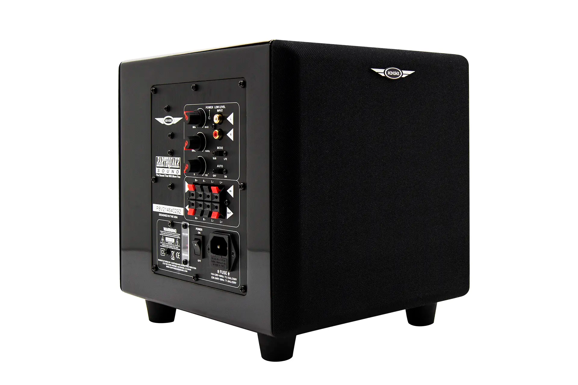 MiniMe-P8-V2 is equipped with an over sized 320-watt Class D amplifier. The advanced Class D technology has an efficiency of 90% which means that the amplifier does not get hot even with hard and continuous operation. Earthquake's unique Evolved Class D design is distinguished by high performance and superb bass control. Even the most complex source material is reproduced articulated and precise.