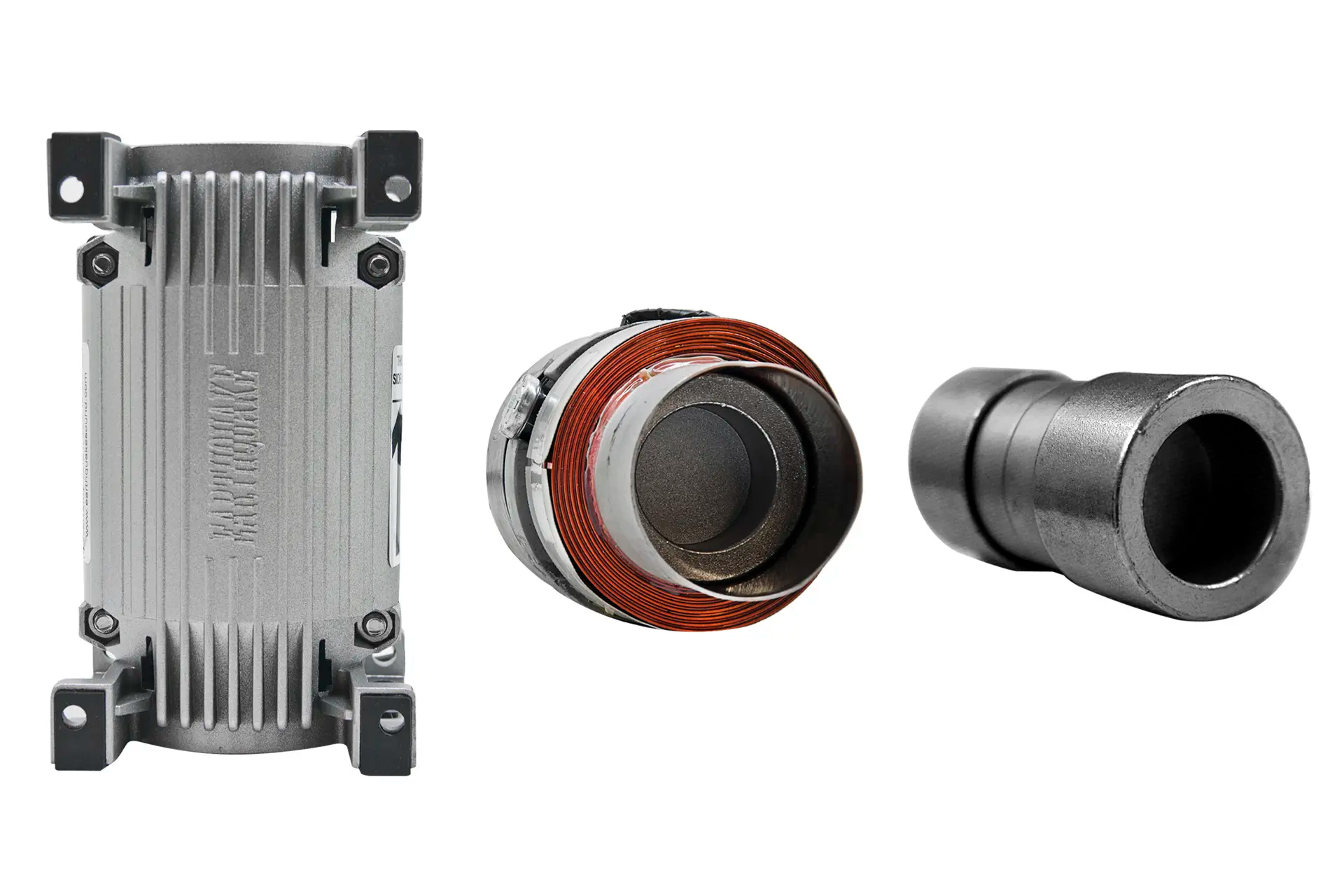 The Quake 10.0  motor system is built around  ultra high-gauss neodynium magnets and  a military grade flat wire voice coil.  Quake 10.0 can produce  5 cm of earthquake inducing stroke and response as low as 5 hz.
