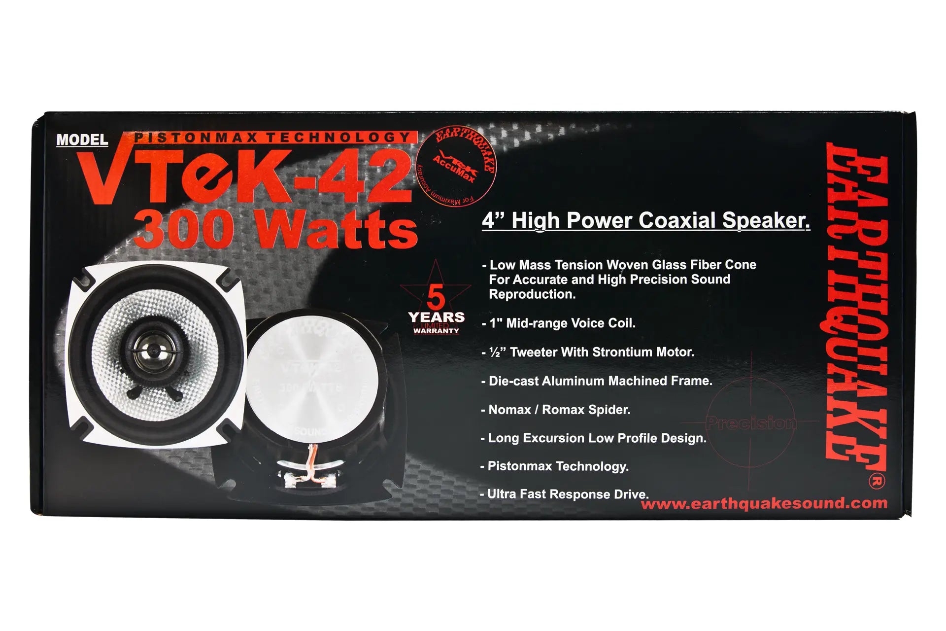 Earthquake’s VTEK speakers play fast and accurate. Their die-cast aluminum baskets prevent rusting and keep your system running cool as ice. The silk tweeters are perfectly dialed in to reproduce the crispest and most accurate highs you’ve ever heard. Their sound blends perfectly with the sound of the midrange drivers.