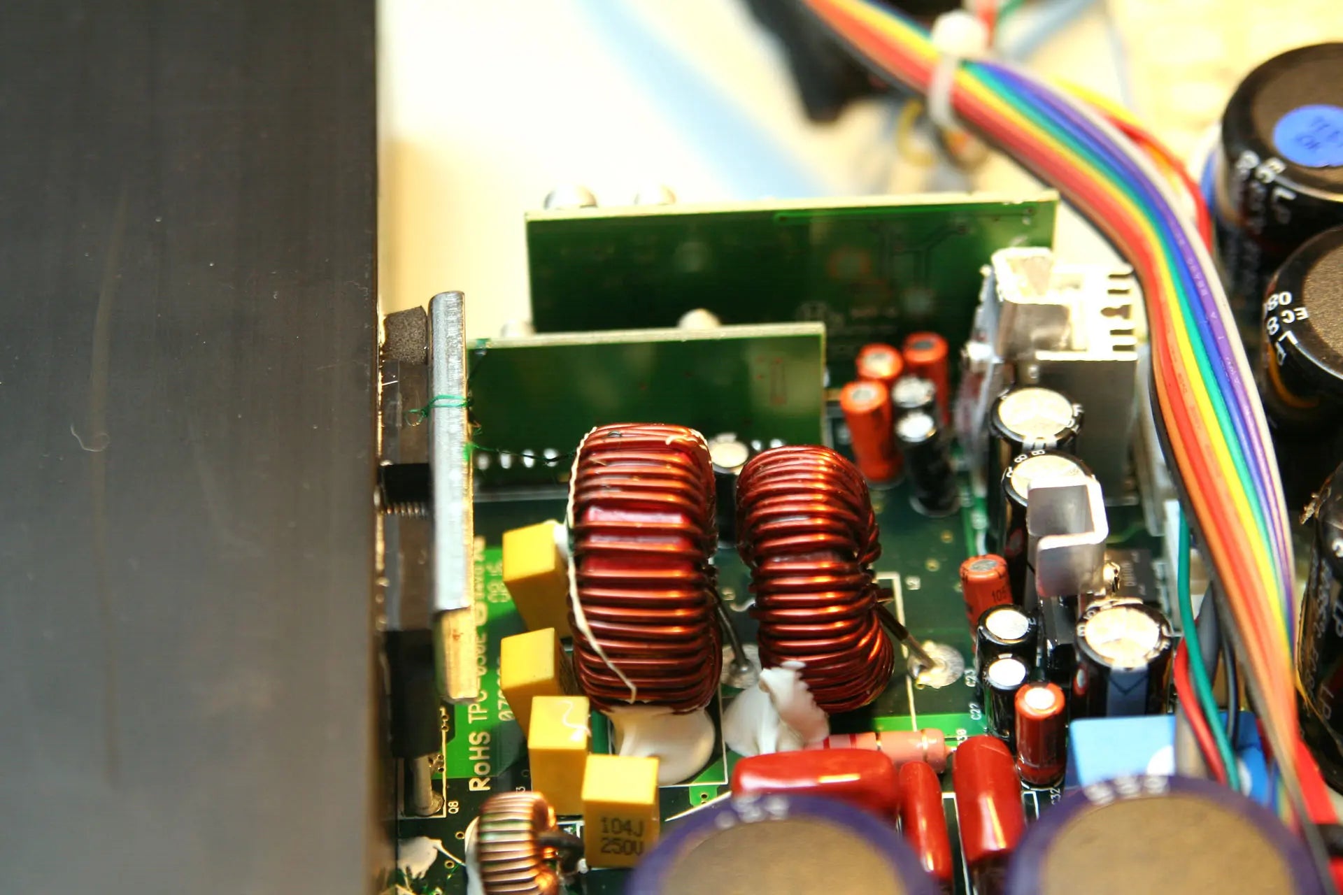 The patented Optical Distortion Limiting circuit is a revolutionary design that provides full protection against overdriving and distortion. The uniqueness of this design is that the audio signal remains immaculate, as ODL is not in the signal path. Traditionally, the signal runs through the protection circuit thereby complicating the signal path. ODL is unique because it insulates the protection circuit behind an optical coupler. The delicate input signal meets a Y-sensing and the signal is duplicated. The original signal continues untouched to the amplifier section. The duplicated signal is translated into light where ODL compares it with the power amp section. The use of light gives ODL a response time unattainable in a conventional design. If ODL detects an overdriven signal that can not be amplified nominally or by Overdrive, ODL ensures distortion-free amplification by adjusting the input power in real time.