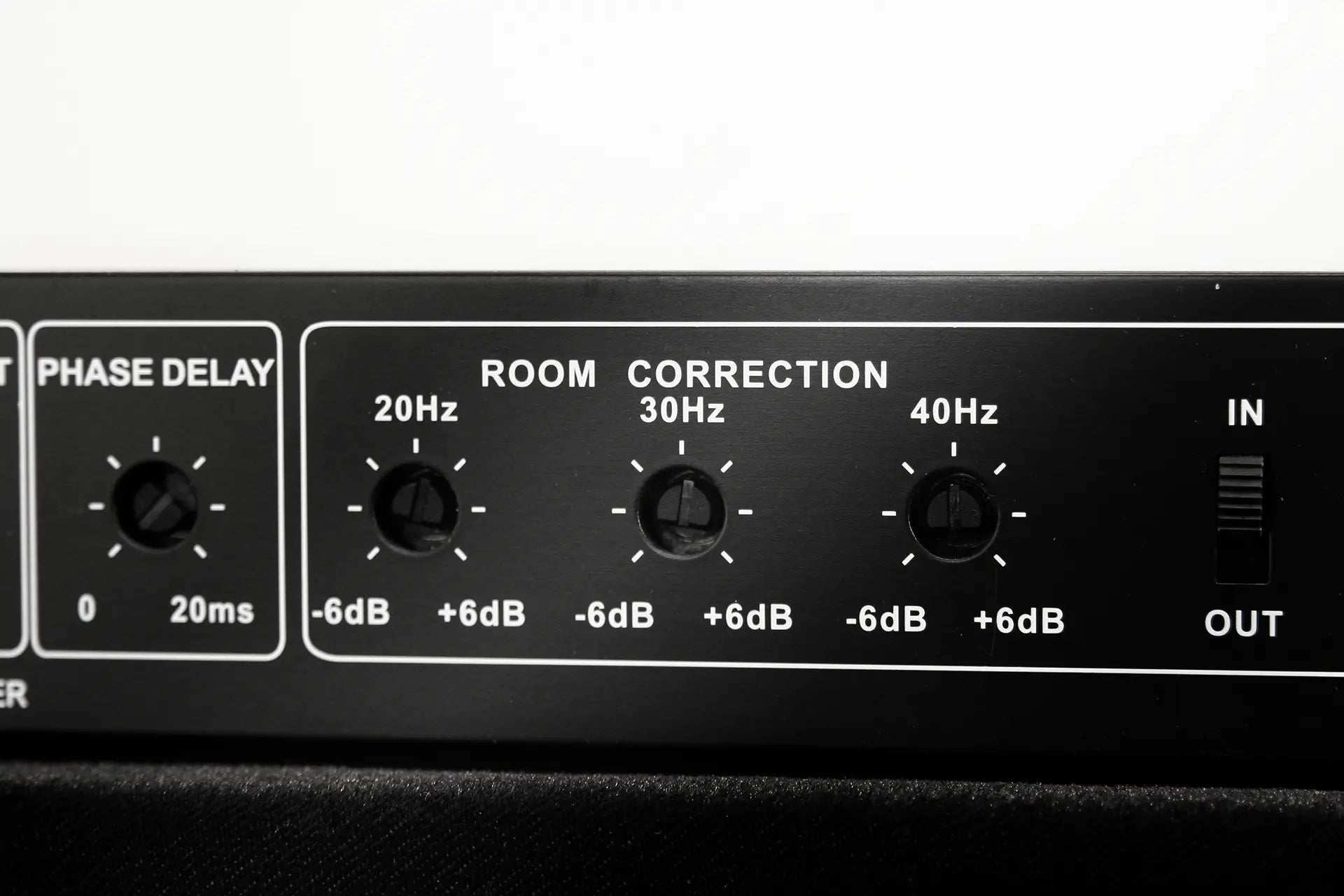 - Play a 50 Hz test tone, turn phase delay button until the maximum output is reached.