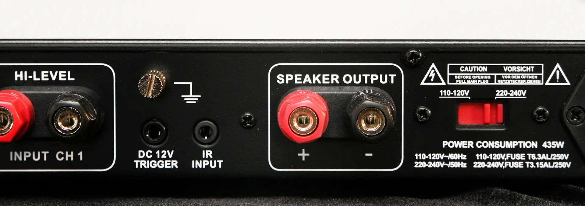 - IR input and remote control with volume control